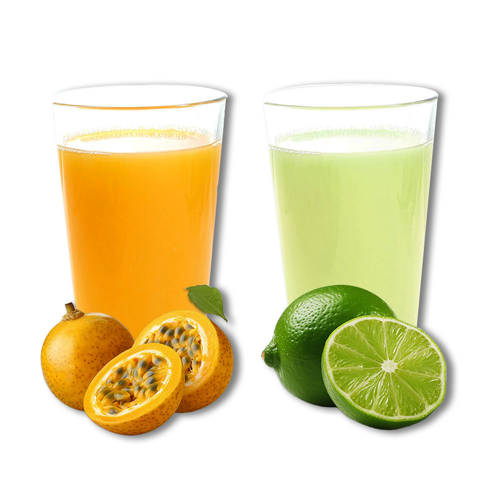 Ingredientes: Refrescantes bebidas naturales preparadas con jugo de limón o maracuyá recién exprimido, endulzadas al gusto y servidas bien frías.