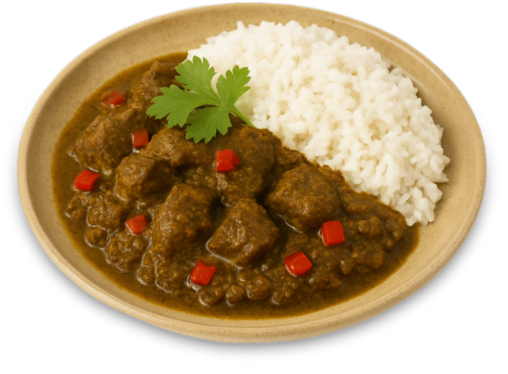 Ingredientes: Jugosos trozos de carne de res con aderezo criollo, culantro, chicha de jora y especias, acompañados de frejoles y arroz blanco