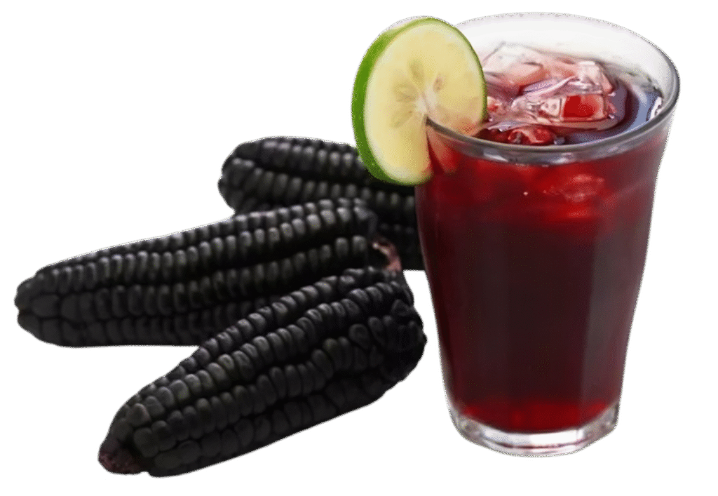 Ingredientes: Bebida tradicional peruana hecha a base de maíz morado, hervido con piña, canela, clavo de olor y un toque de limón.